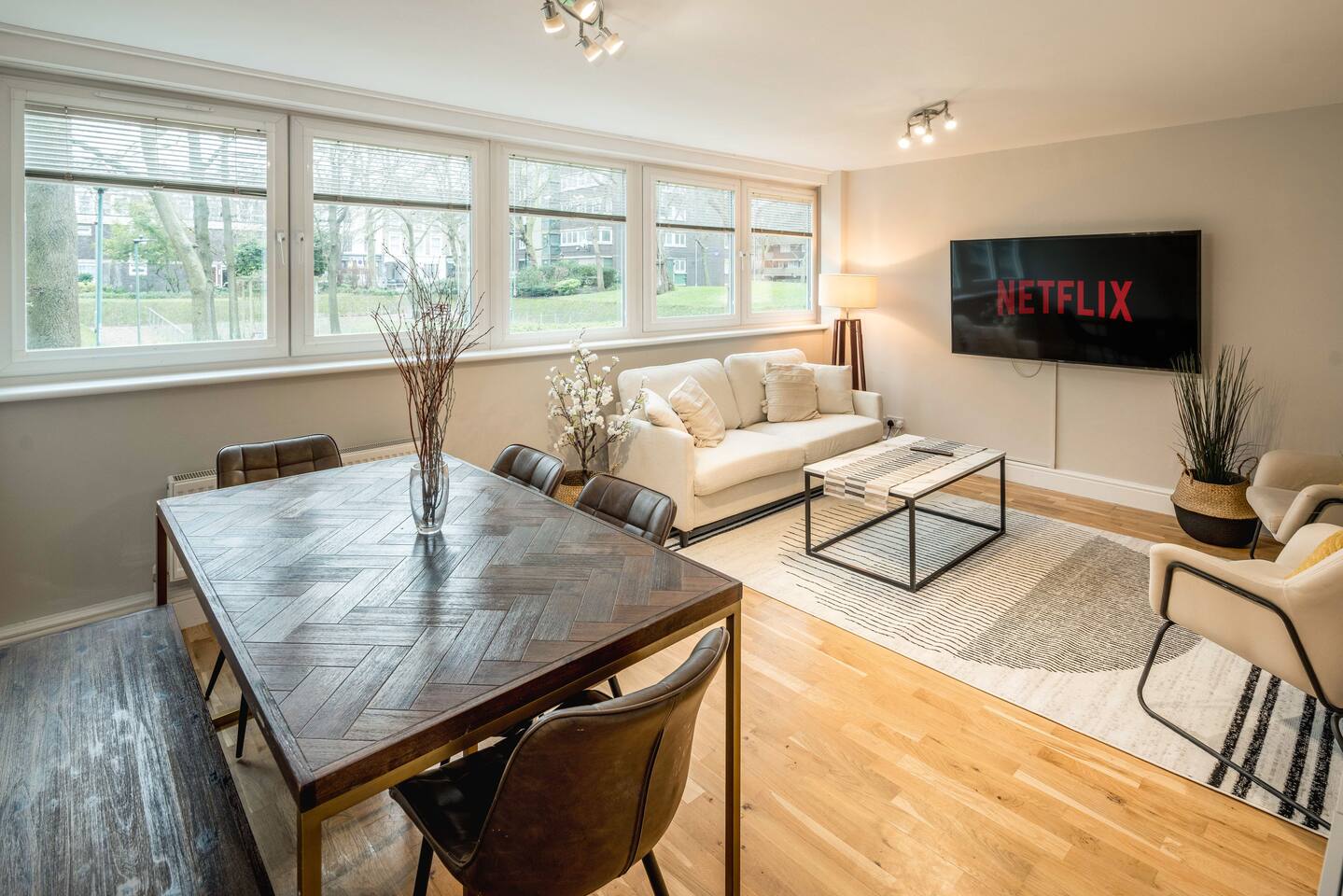 • One King-Size Bedroom • Two Double Bedrooms elegantly furnished for a restful stay • Bunk bed bedroom for adults and children • 1 Full bathroom upstairs and a WC with a working shower downstairs. The shower downstairs, although fully working, is not convenient due to the small size of the bathroom. That is why we have not listed it in our amenities! • Living Area with a 65-inch television, perfect for movie nights or unwinding after a day of sightseeing • High-speed WIFI reaching 500 mb/s • Stylish Dining area & Kitchen: The contemporary kitchen is fully equipped, and ideal for cooking and enjoying meals together, while the dining area offers a relaxed, social atmosphere. Whether you're visiting for a weekend getaway, an extended stay, or a business trip, this townhouse offers the perfect balance of luxury, comfort, and location. We can’t wait to welcome you to your home away from home in the heart of London!