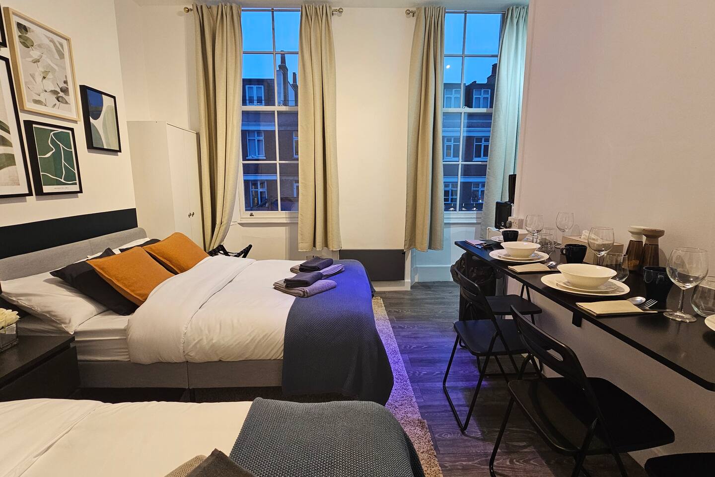 Enjoy a stylish experience at this centrally-located place. This spacious studio is in the heart of the infamous Chapel Market. Known as the “heart of the Angel”, Chapel Market has been serving the local community for more than 150 years. This traditional street market offers a wide selection of stalls, offering fresh fruit and veg, flowers, cards and gifts, as well as toys, gadgets, and electrical goods. Its located on the first floor with about 20 steps to climb.