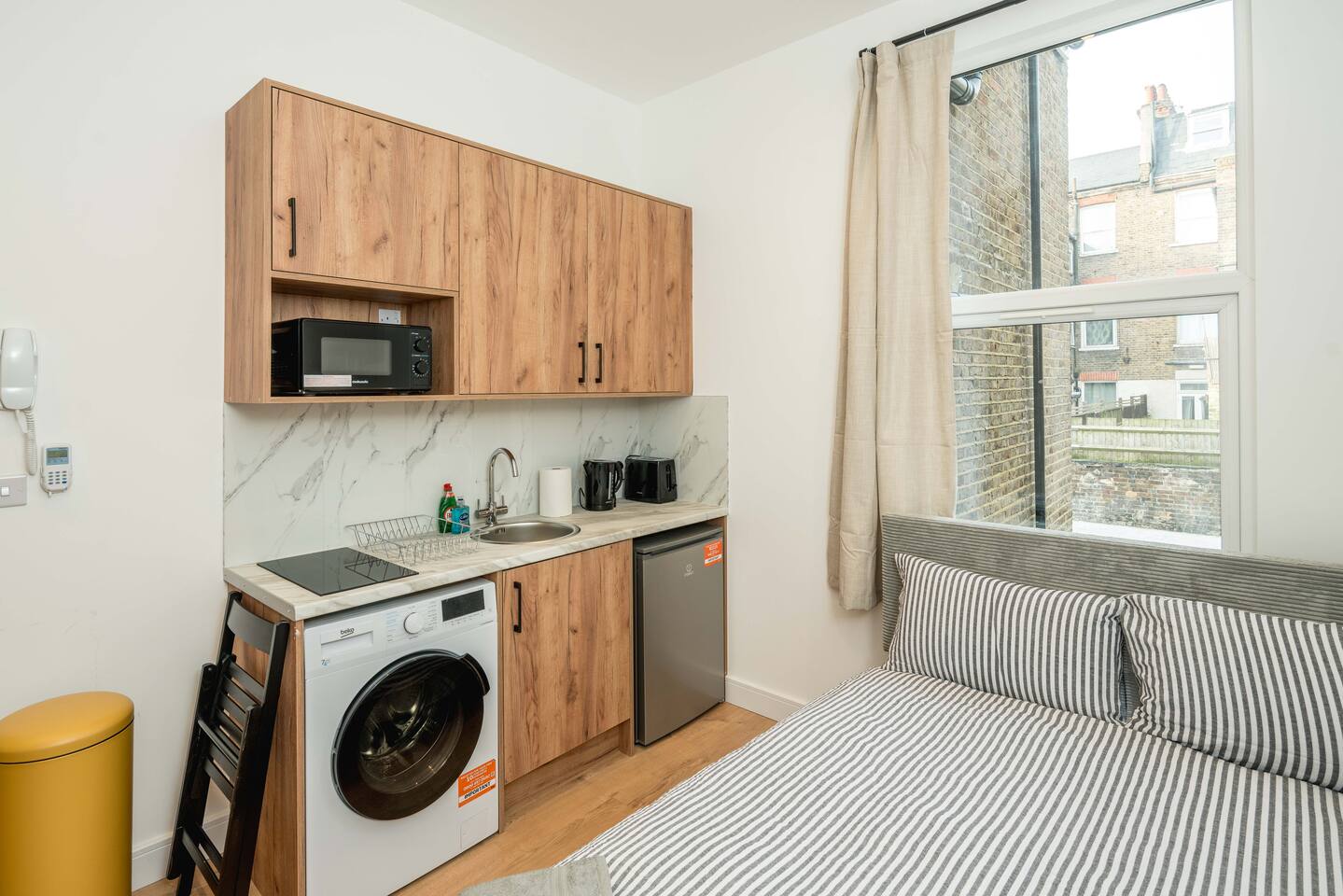 This double-bed studio is located on the ground floor with 8 steps to climb and comes with: One double bed One Chair Kitchen Fully private en-suite bathroom Fresh linen Fresh towels Hair dryer Washing machine Dryer machine Microwave Kettle Toaster Cooker Dinnerware Cookware