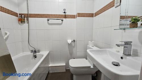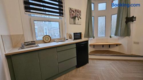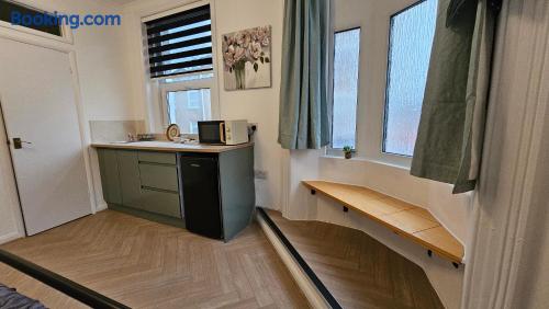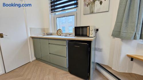 Everything you see in the pictures is private and not shared by anyone. The studio is located in a hotel-like building! Every door is opened by the means of codes that we provide you with before your check-in. ----------------------------------- Enjoy a stylish experience at this centrally-located place. This is a newly renovated studio located on the first floor with around 18 steps to climb. It comes with a Super King-sized bed, Kitchen and a private bathroom.