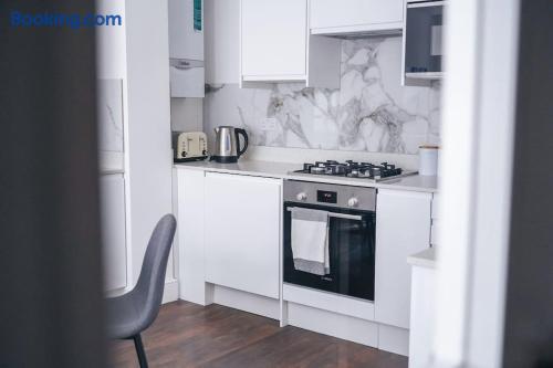 You have the entire apartment for your own use. There is a king size bed, a bathrooms and a large lounge/diner. The sofa in the lounge can be converted into a double bed. Kitchen is open so you will be able to entertain friends while cooking. Newly furnished in summer 2022 with hotel grades bed/linens, a Samsung fridge and Bosch appliances. This is a home where will feel relaxed after a day of sightseeing in London.