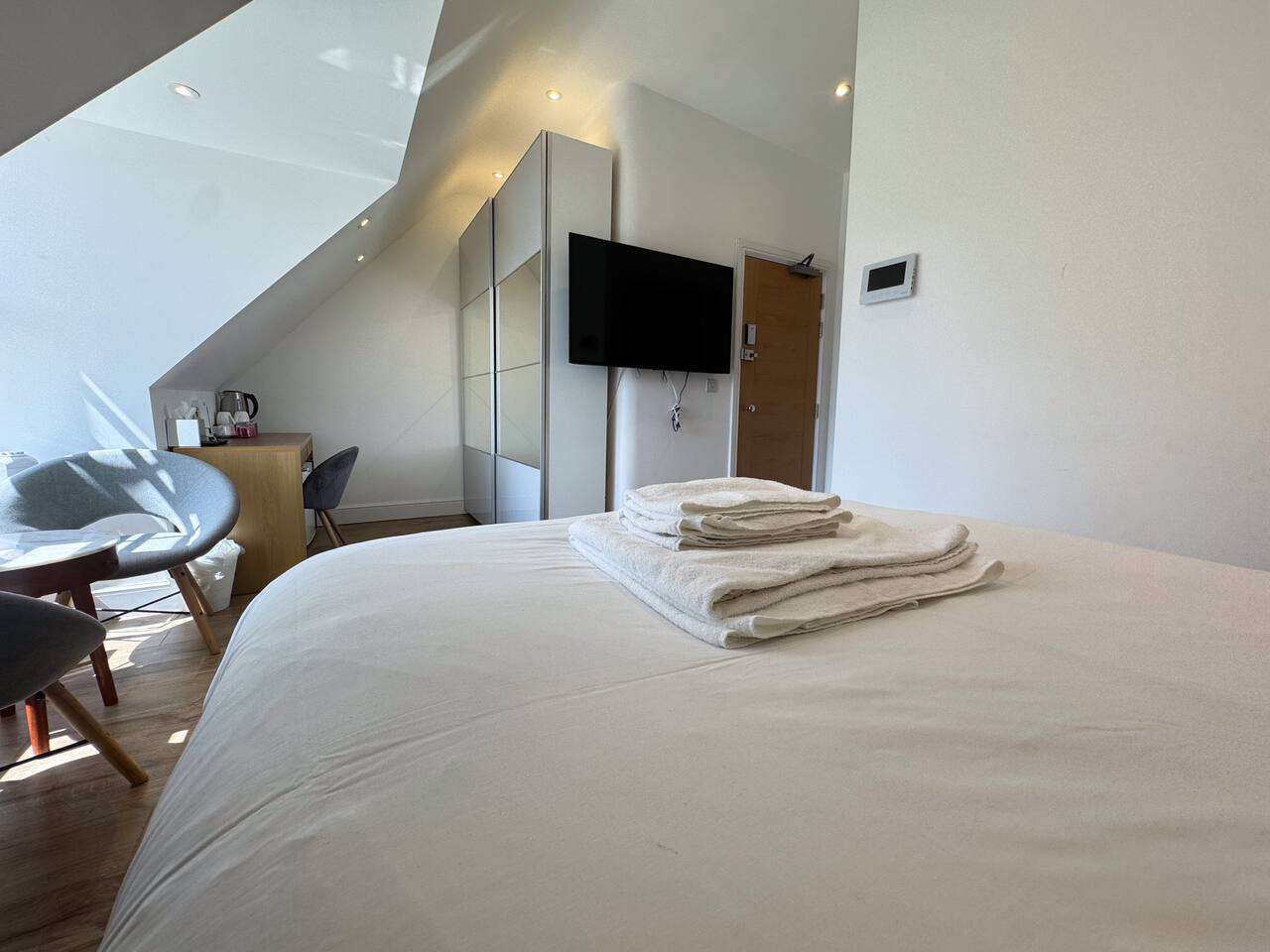 A Deluxe Double room with en-suite bathroom in West Kensington, 6 minutes walk from underground station (tube). You will be staying in one of the rooms in this Victoria Building. Newly refurbished in summer of 2022 for our guest with hotel grade furnishing and beds. This room includes a shared kitchen in the building.