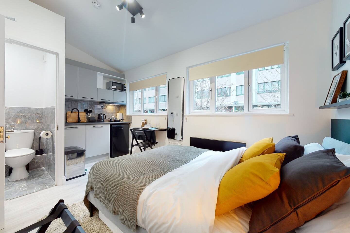 This studio is located in a recently refurbished and renovated townhouse. it has a private entrance and is secured with a digital keypad that opens with a unique code given to you once your booking is confirmed. This studio is located on the second floor with stairs to climb.